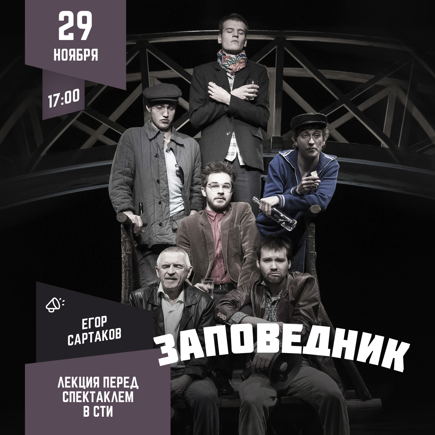 Предлагаем вам в компании Егора Сартакова погрузиться в атмосферу «застойных» 1970-х годов и посетить спектакль «Заповедник» в театре «Студия театрального искусства».