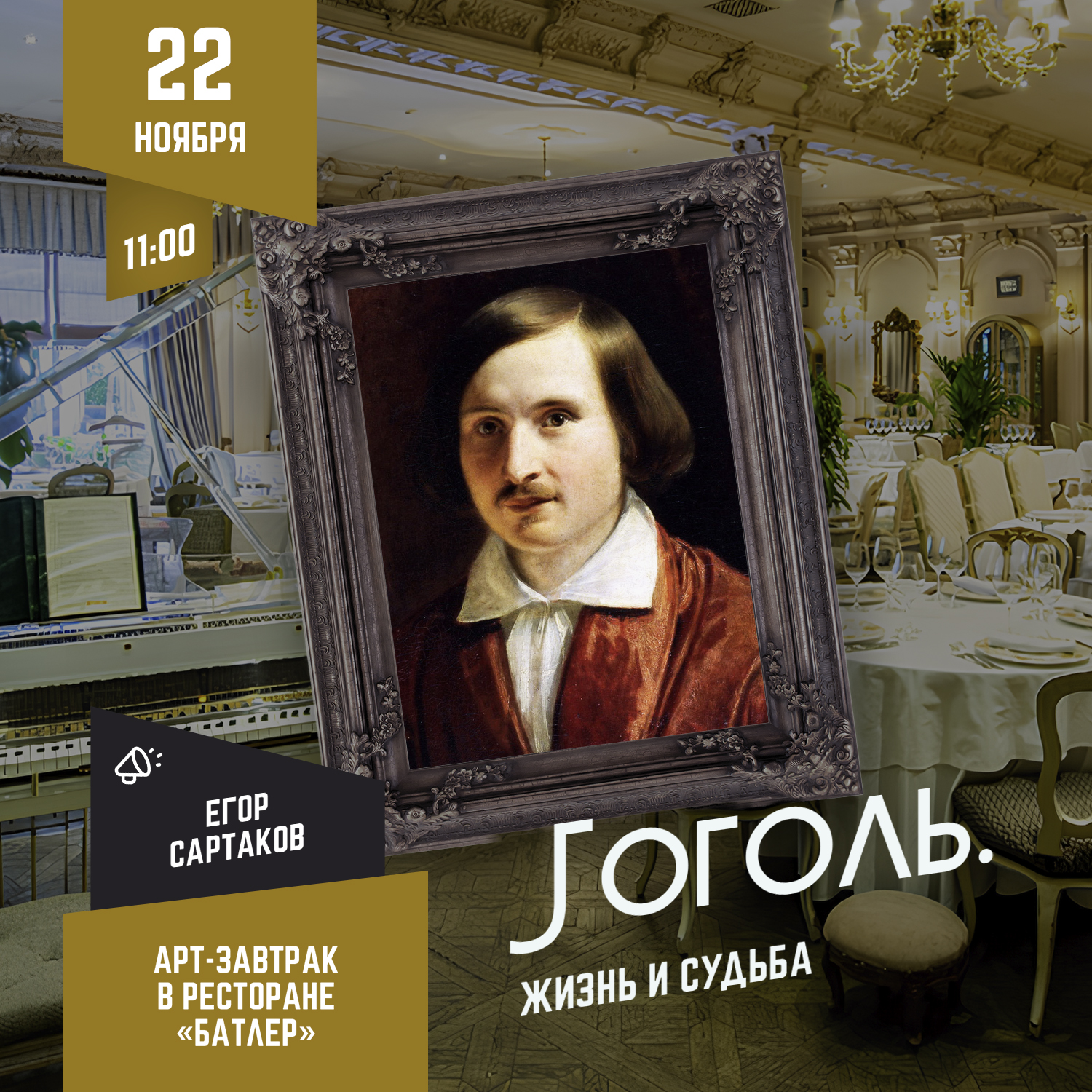Приглашаем вас на арт-завтрак в компании Егора Сартакова. Под игристое и легкий завтрак мы услышим рассказ о жизни Гоголя сразу в трех местах – на Украине, в России и в Италии. Узнаем, почему брак родителей Гоголя благословила сама Богородица и как фанатичная религиозность матери повлияла на маленького Николая и его творчество. Ответим на вопрос, почему Гоголь перебрался из теплой Малороссии в неуютный, чужой ему Петербург и из чего была сшита его шинель в этом холодном городе.
