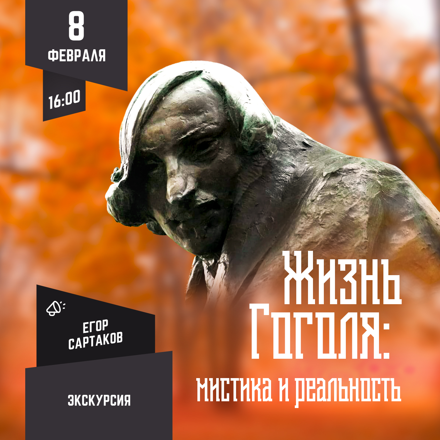 А после этого отправимся в особняк, в котором февральской ночью 1852 года были сожжены рукописи второго тома «Мертвых душ». На экскурсии мы поговорим о том, как жил Гоголь, неуклюжий меланхолик, страдающий с детства болезненными припадками, и как он умер — что произошло с его могилой, и правда ли, что его похоронили живым.