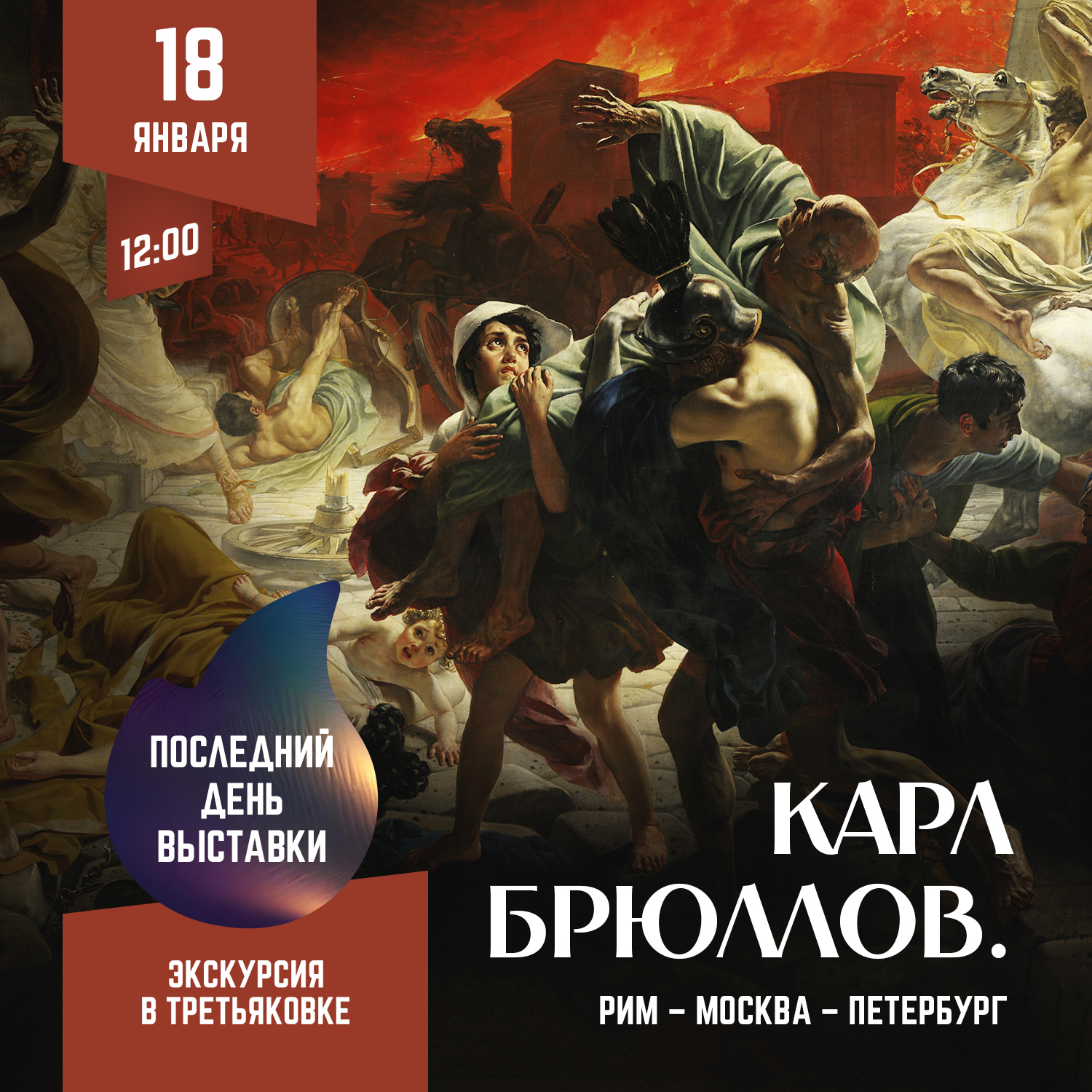 На экскурсии мы узнаем, как художник, отдав дань классицизму, нашел свое истинное призвание в портретной и жанровой живописи. Он создал новую форму изобразительности – портрет-картину. Впервые после реставрации из Петербурга в Москву приедет гениальное полотно «Последний день Помпеи». Кроме того, в рамках экскурсии будут показаны акварельные работы Брюллова, которые считаются подлинными жемчужинами его творчества.
