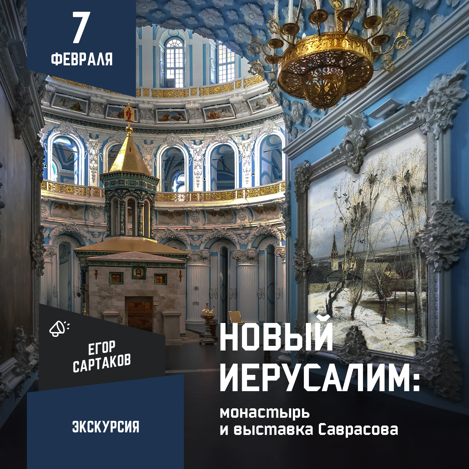 В компании Егора Сартакова отправимся на выставку, по дороге в Новый Иерусалим Егор расскажет о нелегком пути Алексея Саврасова, для которого знаменитые «грачи» стали и шедевром, и проклятием.