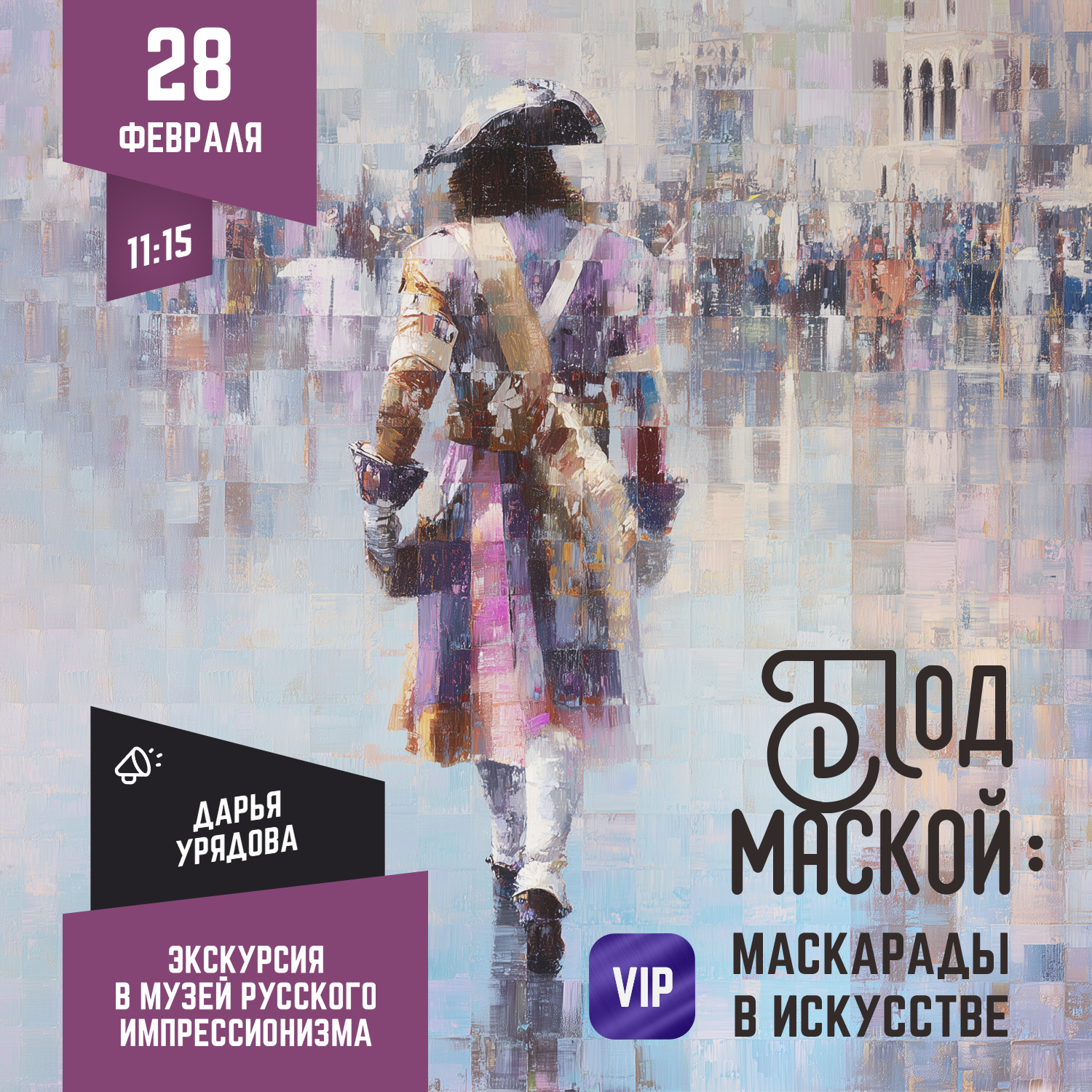 В 2026 году Музей русского импрессионизма празднует десятилетие. Задает настроение юбилейному году выставка «Под маской» — залы захватит панорама карнавалов и маскарадов длиною в век. Проект о театрализации повседневной жизни в дореволюционной России покажет, как европейская забава стала неотъемлемой частью русской культуры. Работы Владимира Маковского, Сергея Судейкина, Сергея Виноградова, Абрама Архипова и других художников представят лучшие мгновения уличных гуляний, придворных балов и домашних праздников.