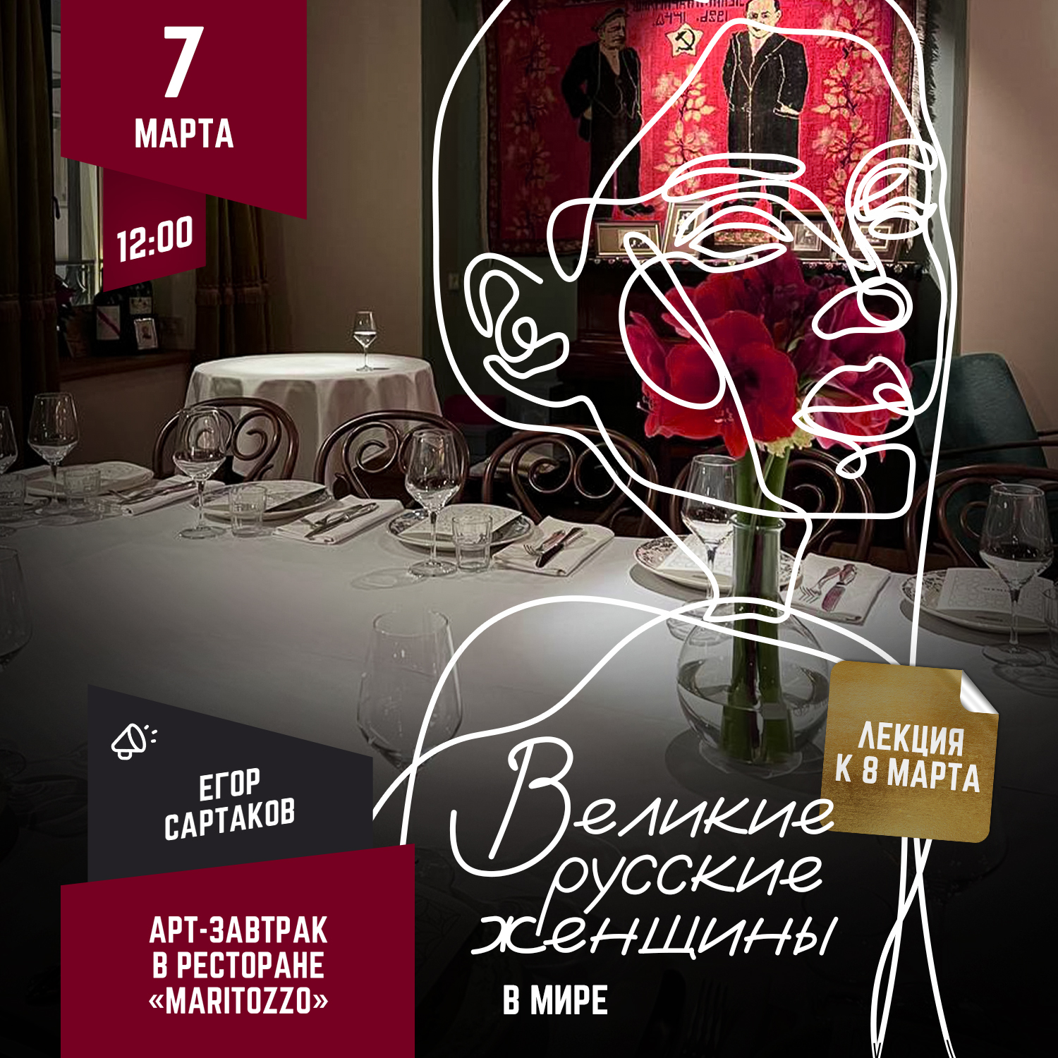 Специально к весне Егор Сартаков приготовил лекцию о великих русских женщинах в мире. Встретимся на лекции в роскошном ресторане «Maritozzo» на Патриарших прудах!