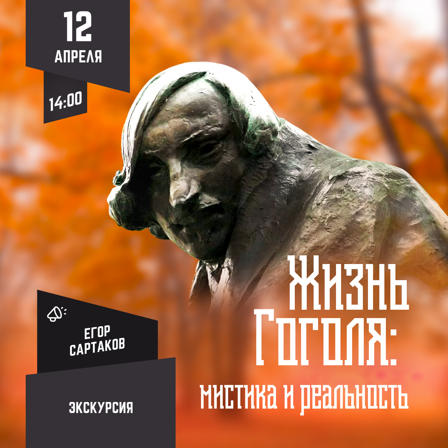 Пожалуйста, обратите внимание, что на странице оплаты Вам необходимо будет выбрать нужную дату самостоятельно. Кроме того, мероприятие проводится совместно с Домом Гоголя, поэтому условия возврата билетов отличаются от обычных и определяются не нашим лекторием, а музеем.